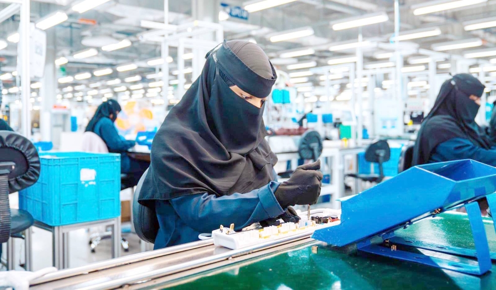 فتيات يعملن في المدينة الصناعية بالرياض. (واس)