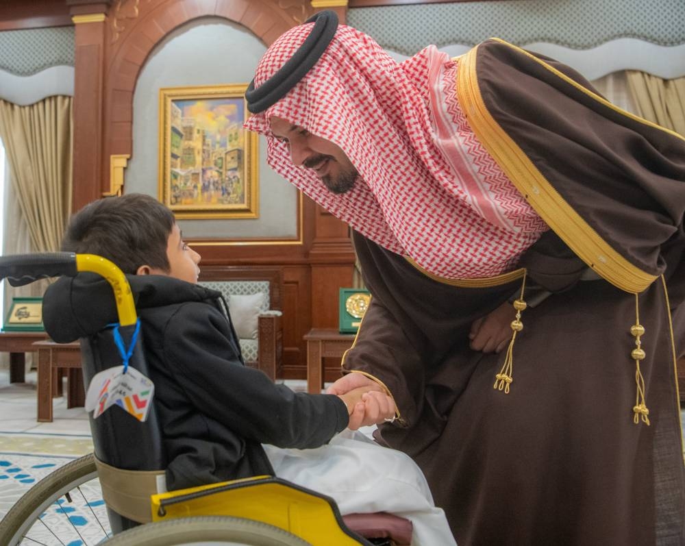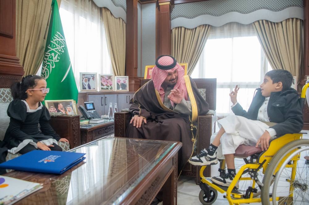 استقبل أمير منطقة المدينة المنورة الأمير سلمان بن سلطان، اليوم (الإثنين)، مدير عام مركز الأمير سلطان بن عبدالعزيز لجمعية الأطفال ذوي الإعاقة هيثم عثمان، يرافقه عدد من مسؤولي الجمعية، إضافة إلى الطفلين عبدالله السهلي ونور الحسين، المستفيدَين من خدمات المركز.