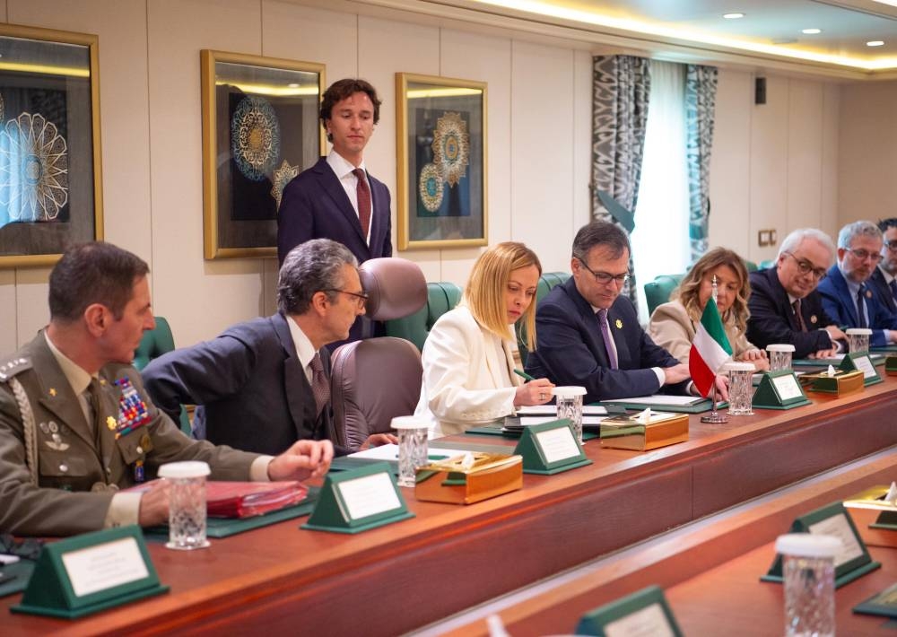 فيما حضر من الجانب الإيطالي السفير لدى المملكة كارلو بالدوتشي، والمستشار الدبلوماسي لرئيسة الوزراء السفير فابريتسيو ساجو، والمستشار العسكري لرئيسة الوزراء الجنرال فرانكو فيديريتشي، ومديرة السكرتارية الخاصة لرئيسة الوزراء الدكتورة باترتسيا سكوريتي، ورئيس المكتب الصحفي لرئيسة الوزراء الدكتور فابريتسيو الفانو، ورئيس المراسم الخاصة لرئيسة الوزراء المحامي فرانشيسكو بياتزا، وعدد من كبار المسؤولين.
