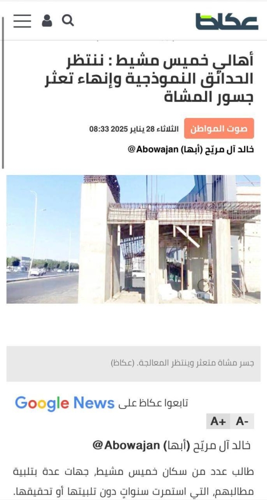 أوضح المتحدث باسم بلدية محافظة خميس مشيط بدر القرني، رداً على المادة الصحفية التي نشرتها "عكاظ" اليوم، أن من أولويات البلدية هي تحسين الحدائق، وتجميلها، وزيادة عددها، والسير بخطى متسارعة في إعادة تهيئة وتأهيل جميع الحدائق، وتنسيقها بما يتواكب مع المشهد الحضري.