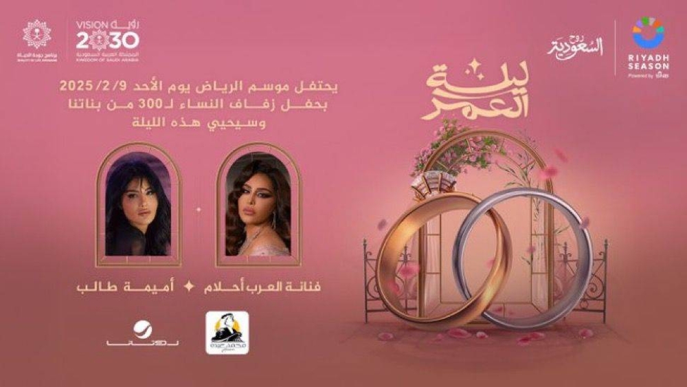 في إطار فعاليات موسم الرياض المتنوعة والمبهرة، يحتفي الموسم بحدث فريد من نوعه من خلال إقامة «ليلة العمر»، التي تشمل حفل زفاف جماعي لـ600 من شباب وبنات الوطن.