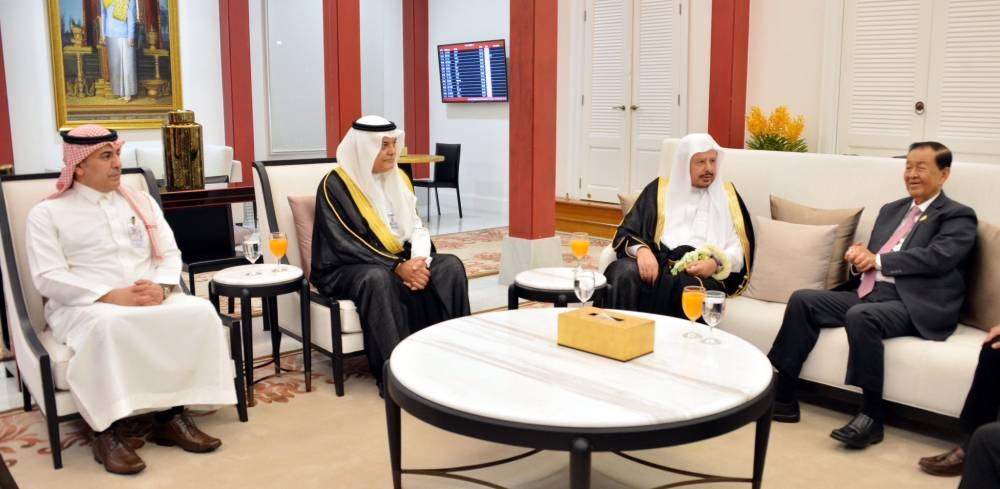 وكان في استقباله لدى وصوله مطار سوفارنابومي الدولي رئيس الجمعية الوطنية رئيس مجلس النواب بتايلند وان محمد نورماثا، وسفير خادم الحرمين الشريفين لدى تايلند عبدالرحمن السحيباني، والنائب الأول لرئيس مجلس النواب، وعدد من كبار المسؤولين في مجلس النواب التايلندي.