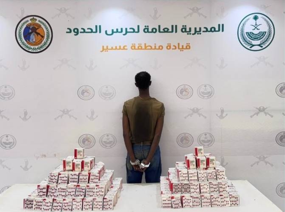 قبضت الدوريات البرية لحرس الحدود في قطاع الربوعة بمنطقة عسير على مخالف لنظام أمن الحدود من الجنسية الإثيوبية، لتهريبه (49350) قرصًا خاضعًا لتنظيم التداول الطبي، وجرى استكمال الإجراءات النظامية الأولية بحقه، وتسليمه والمضبوطات لجهة الاختصاص.