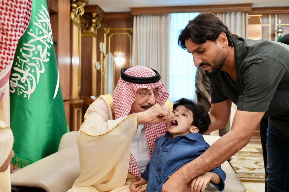 دشن أمير منطقة جازان الأمير محمد بن ناصر بن عبدالعزيز، في مكتبه اليوم، حملة التطعيم ضد شلل الأطفال التي يشرف على تنفيذها فرع وزارة الصحة بجازان.