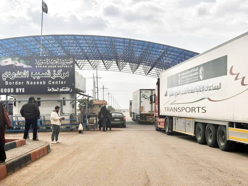 20 شاحنة سعودية تعبر منفذ نصيب لمساعدة سورية