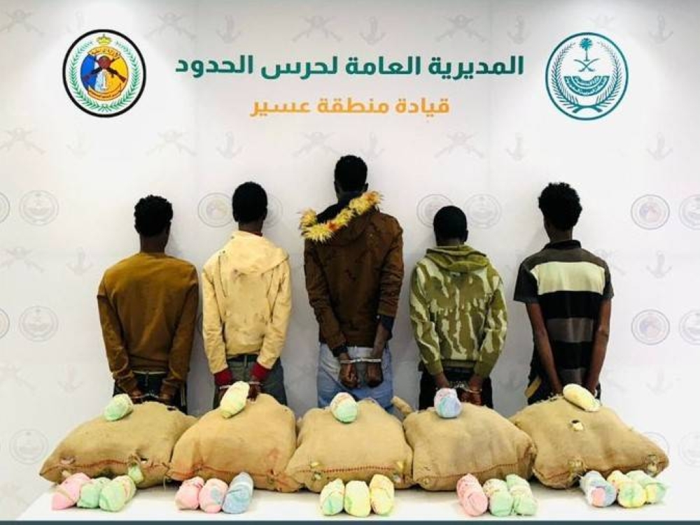 قبضت الدوريات البرية لحرس الحدود في قطاع الربوعة بمنطقة عسير على (5) مخالفين لنظام أمن الحدود من الجنسية الإثيوبية، لتهريبهم (100) كيلوجرام من نبات القات، وجرى استكمال الإجراءات النظامية الأولية بحقهم، وتسليمهم والمضبوطات لجهة الاختصاص.