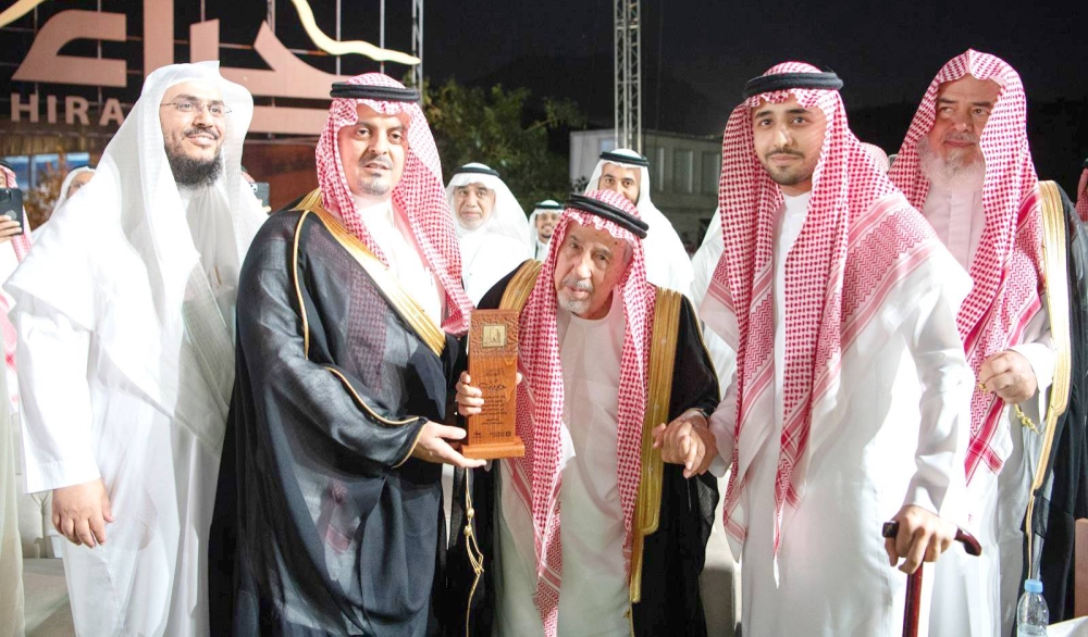 نائب أمير مكة يكرّم خطاط المصحف عثمان طه خلال حفل تدشين المتحف.