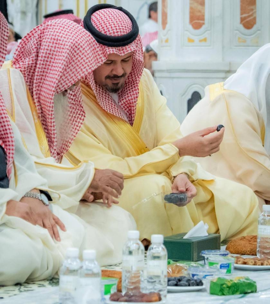 شارك أمير منطقة المدينة المنورة الأمير سلمان بن سلطان بن عبدالعزيز، أئمة المسجد النبوي الشريف، إفطارهم في رحاب المسجد النبوي.
