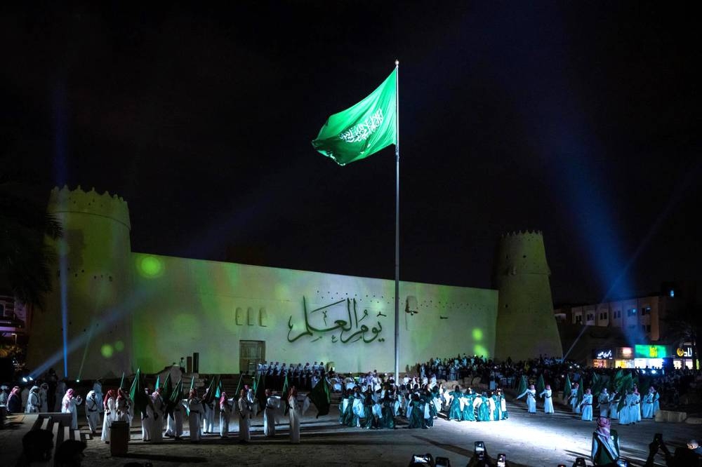 في هذا اليوم يستذكر السعوديون بفخز رمز هويتهم الوطنية، واعتزازهم بالقيم الراسخة التي يحملها في مضامينه،