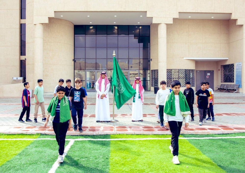 بعدها ألقيت كلمات ومشاركات طلابية، حول أهمية الاعتزاز بالهوية الوطنية، التي يدل عليها العَلَم السعودي، والمراحل التي مر بها، من حيث الشكل والمضمون، والتعديلات التي طرأت عليه وبروتوكلاته، والإرشادات الخاصة برفع العلم أو طيه ومخالفات استخدامه.