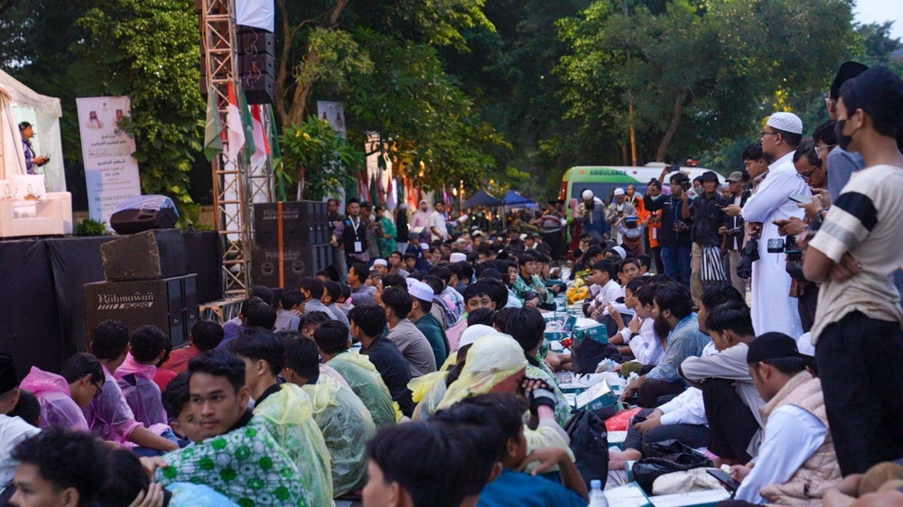في مشهد يعكس عظمة التلاحم الإسلامي وروح العطاء، سجلت مائدة برنامج خادم الحرمين الشريفين الملك سلمان بن عبدالعزيز آل سعود لتفطير الصائمين، التي نظمتها وزارة الشؤون الإسلامية والدعوة والإرشاد في مدينة سولو بإقليم جاوة الوسطى في جمهورية إندونيسيا، اليوم (الجمعة) 14 رمضان للعام 1446هـ، رقماً قياسياً كأكبر مائدة إفطار رمضانية بدول آسيان، حيث تجاوز عدد الحضور 20 ألف صائم، وامتدت المائدة على مساحة 2800 متر طولي في مضمار «ماناهان» الرياضي بوسط المدينة، في حين حصدت شهادة موسوعة «موري» للأرقام القياسية في إندونيسيا للعام الثاني على التوالي بحجم وطول المسافة التي أقيمت عليها السفرة البالغة 2800 متر.