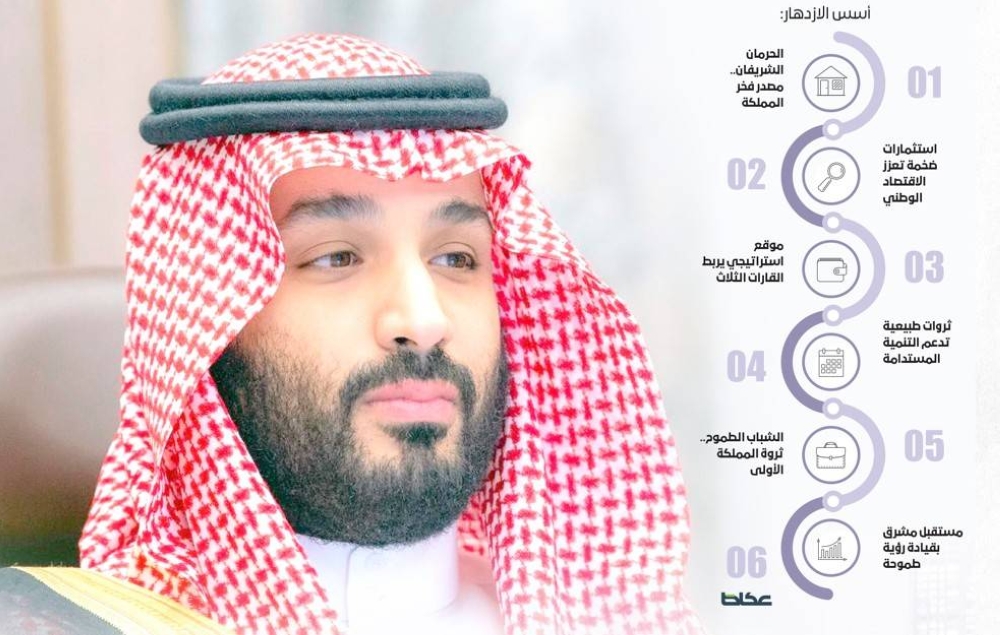 بكلمات ذات دلالات عظمى، أضاء ولي العهد رؤيته نحو المستقبل، إذ قال «دائماً ما تبدأ قصص النجاح برؤية، وأنجح الرؤى هي تلك التي تُبنى على مكامن القوة. ونحن نثق ونعرف أن الله -سبحانه- حبانَا وطناً مباركاً هو أثمن من البترول؛ ففيه الحرمان الشريفان، أطهر بقاع الأرض، وقبلة أكثر من مليار مسلم، وهذا هو عمقنا العربي والإسلامي وهو عامل نجاحنا الأول».