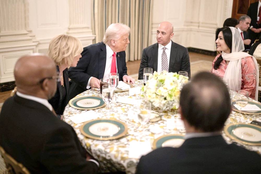 الرئيس الأمريكي دونالد ترمب خلال إقامته مأدبة إفطار رمضاني بالبيت الأبيض، بحضور سفيرة خادم الحرمين الشريفين.