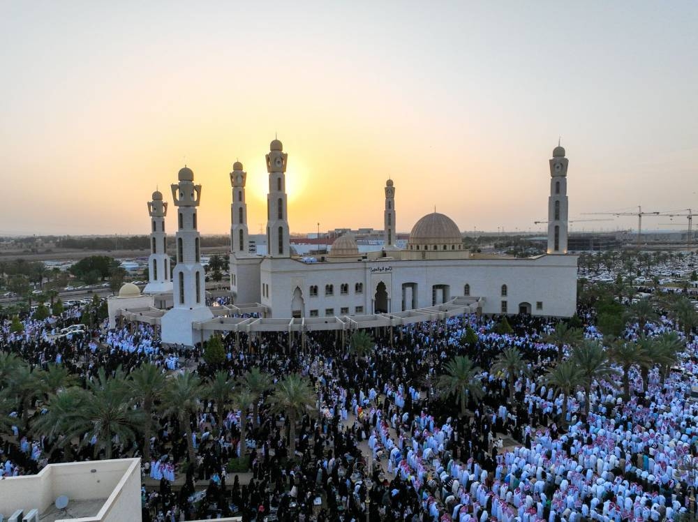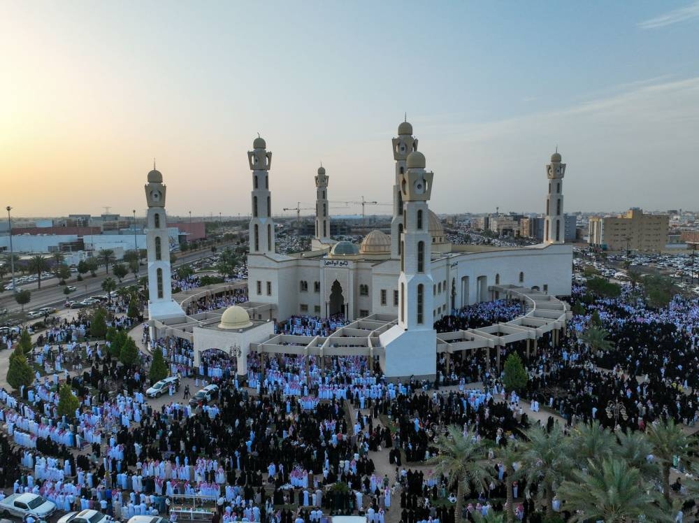 أدت جموع المصلين في مدينة تبوك اليوم صلاة عيد الفطر المبارك في جامع الوالدين، والتقطت صور جوية مبهرة تظهر جموع المصلين وسط الإبداع المعماري الذي يميز ساحاته وأروقته.
