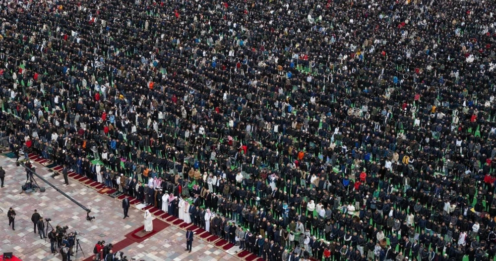 واستهلَّ الدكتور العيسى الخطبةَ بتهنئة الأمة الإسلامية بحلول عيد الفطر المبارك، مشيراً إلى أنَّه يوم للفرح بفضل الله، وتعاهُد آداب الإسلام وأُخوّة الإيمان، وترسيخ الروابط الوثيقة لهذه الأخوة، وهو أيضاً يومٌ للتسامُح وتعزيز أواصر الأخوة والمودة، مشدّداً على أن هذه القيمة الإسلامية الرفيعةَ تشمل الجميع من مسلمين وغير مسلمين.