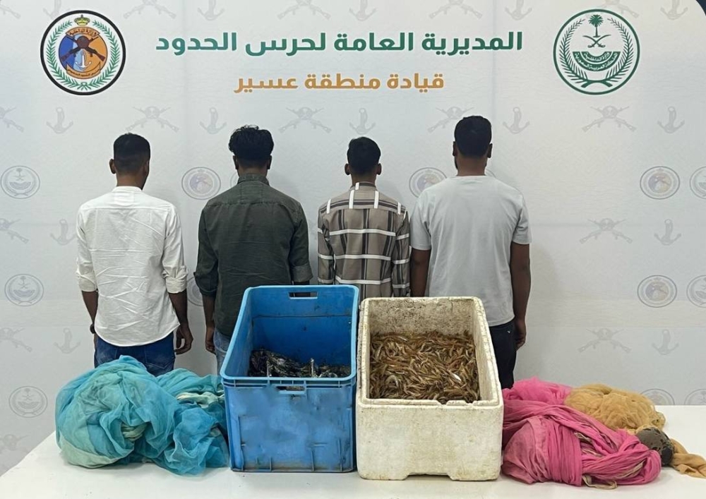 ضبطت الدوريات الساحلية لحرس الحدود بقطاع القحمة في منطقة عسير (4) مقيمين من الجنسية البنغلاديشية مخالفين للائحة الأمن والسلامة لمزاولي الأنشطة البحرية في المناطق البحرية للمملكة العربية السعودية، وذلك لممارستهم الصيد بمنطقة محظورة، وبحوزتهم أسماك مصيدة، واتُخذت الإجراءات النظامية بحقهم بالتنسيق مع الجهات المختصة.