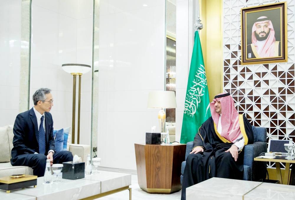 جلسة مباحثات جمعت وزير الداخلية وسفير اليابان لدى المملكة. (واس)