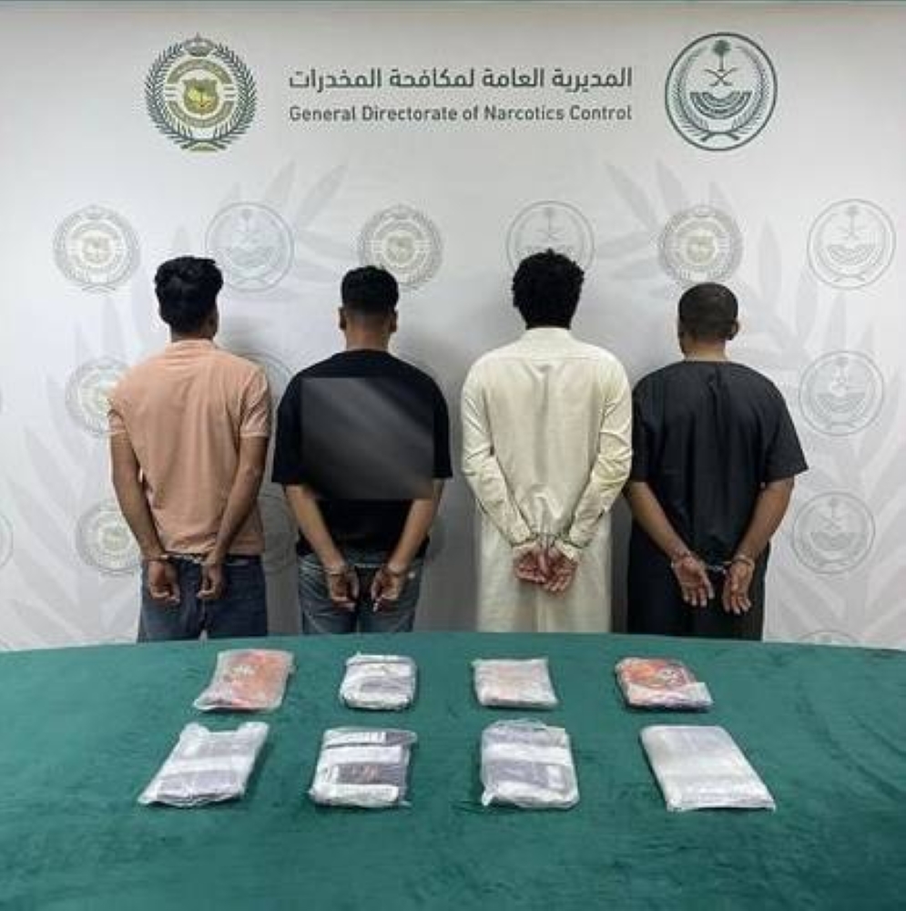 قبضت المديرية العامة لمكافحة المخدرات على مقيمين من الجنسية اليمنية ومقيمين من الجنسية البنجلاديشية بمنطقة حائل لترويجهم (9) كيلوغرامات من مادة الحشيش المخدر، وأوقفوا واتخذت الإجراءات النظامية بحقهم، وأحيلوا إلى النيابة العامة.