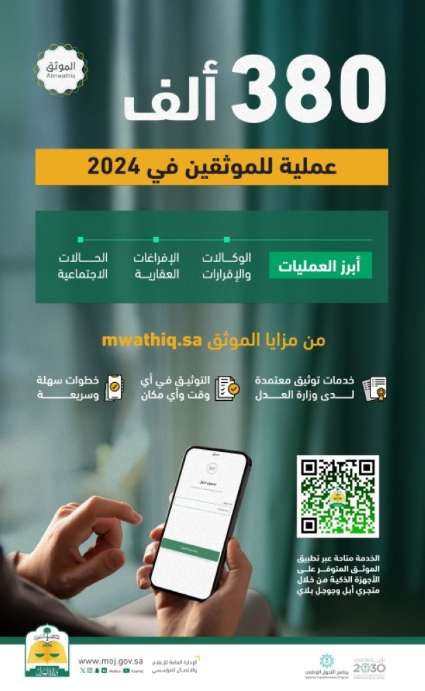 كما يوفر تطبيق وموقع الموثّق mwathiq.sa إمكانية إنجاز هذه الخدمات بسهولة، دون الحاجة إلى زيارة كتابات العدل؛ مما يسهل الإجراءات ويوفر الوقت والجهد على المستفيدين.