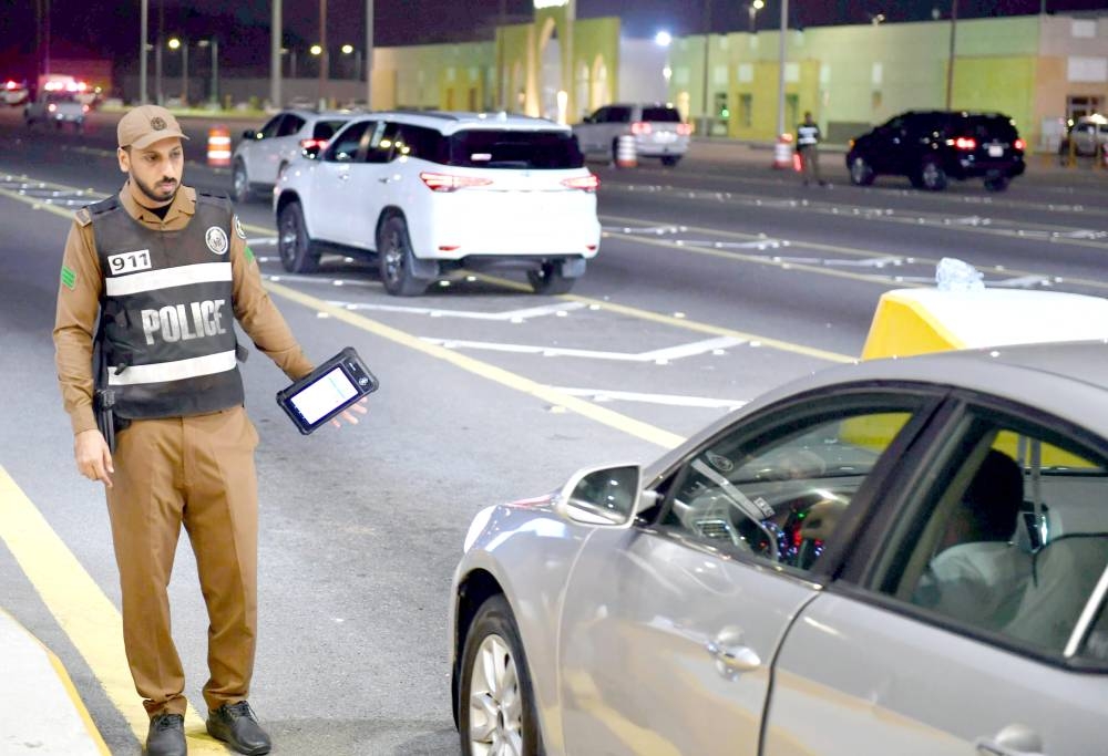 رجل أمن في مهمة تدقيق لمنع دخول مخالفي تعليمات الحج إلى المشاعر المقدسة. (متداولة)