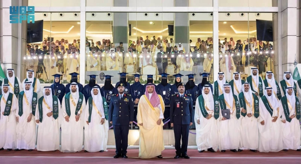 رعى وزير الداخلية الأمير عبدالعزيز بن سعود بن نايف بن عبدالعزيز، أمس (الأحد)، حفل تخريج 1935 طالباً من كلية الملك فهد الأمنية يمثلون طلبة برنامج ماجستير الذكاء الاصطناعي رقم (1) وعددهم (66) خريجاً وخريجة، وطلبة بكالوريوس العلوم الأمنية للدورة (66)، وطلبة الدورة التأهيلية (54) للضباط الجامعيين، إضافة إلى خريجي البرنامج الأكاديمي الأمني للابتعاث الخارجي للدفعة (17).