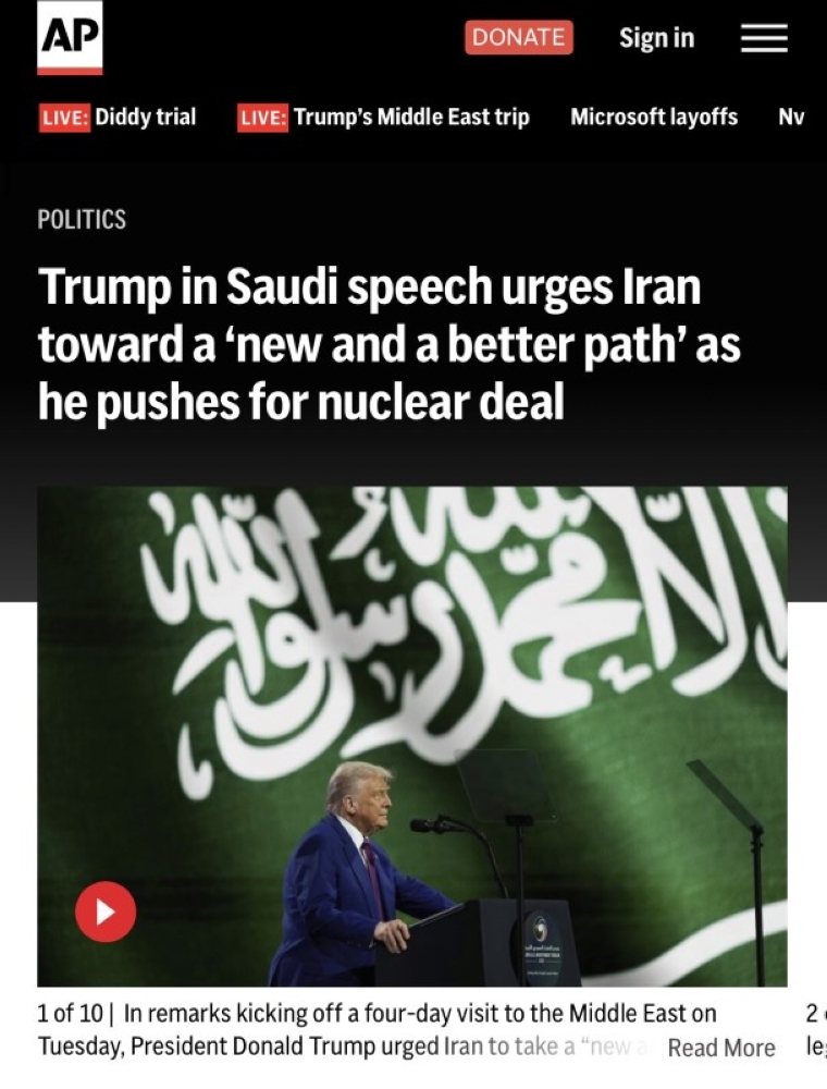 أبرزت دعوة ترمب لإيران للعودة إلى طاولة المفاوضات، معتبرة أن الرياض أصبحت «منصة إطلاق الرسائل الإستراتيجية الأمريكية»، وأن الخطاب الذي ألقاه ترمب في المنتدى كان موجهاً للعالم، لكن مضمونه وُلد في العاصمة السعودية.