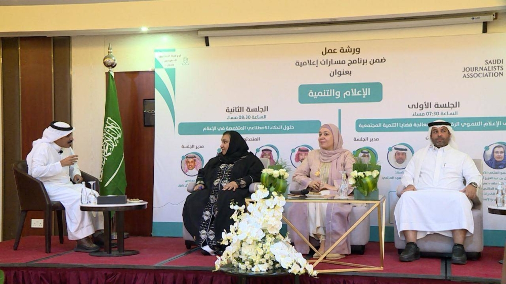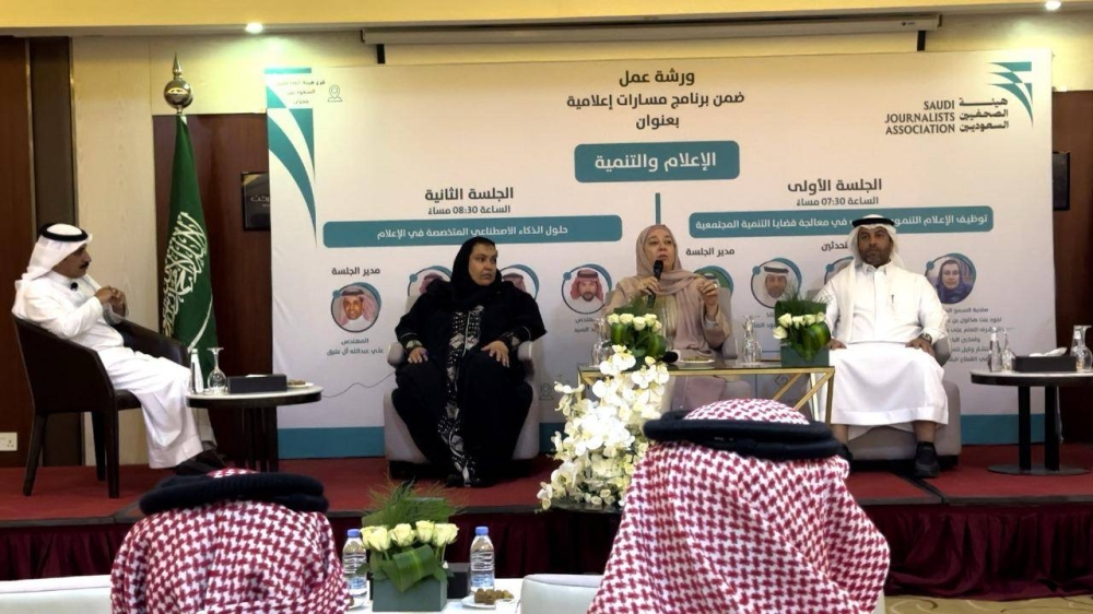 The Saudi Journalists Association in the Najran region organized a workshop titled (Media and Development). The workshop included two sessions, the first of which was titled (Utilizing Development Media in Addressing Development Issues), attended by the General Supervisor of the Support, Development, and Empowerment of Street Vendors file, and the Advisor to the Undersecretary for Human Capacity Development in the Municipal and Housing Sector, Princess Najoud bint Hithalal bin Abdulaziz Al Saud, Abdullah Al-Salhi, Dr. Lubna Abdulaziz Mustafa, and Engineer Mohammed Ismail Al-Shanqeeti, under the management of Ali Zainan.
