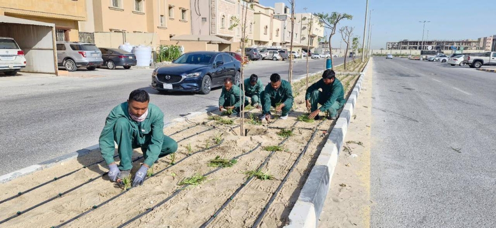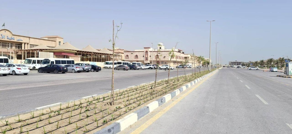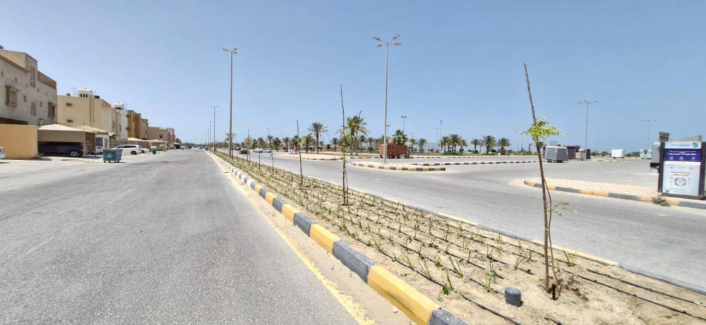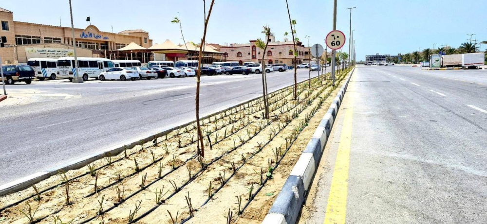 The Municipality of Jubail Governorate has finally completed the development works of the median island in the Al-Hamra neighborhood, stretching over 1,000 meters, as part of its ongoing plan to develop parks, plantations, and median islands, aimed at improving the urban landscape and enhancing vegetation cover in various neighborhoods of the governorate.