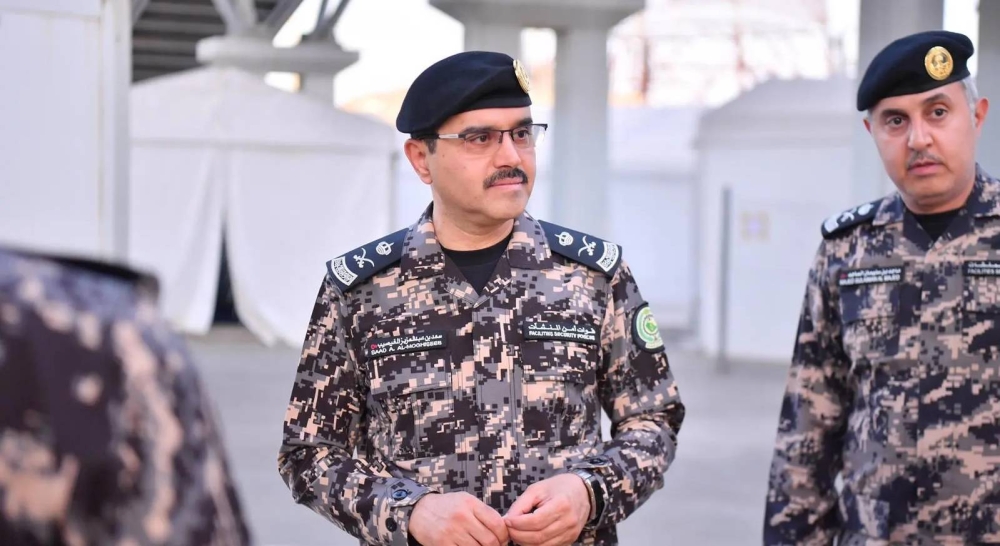 The Acting Commander of the Security Forces for Facilities, Major General Engineer Saad bin Abdulaziz Al-Mughaiseeb, conducted a field visit to the Security Forces for Facilities participating in this year's Hajj season, to carry out their assigned tasks from the leadership of the Hajj Security Forces, in coordination with the security sectors, by managing and organizing the movement of crowds and pedestrians in the external areas surrounding the stations of the Holy Places Train and the Haramain High-Speed Train, and assisting in the security deployment on the roads and sites to prevent the entry of violators of the Hajj regulations and instructions, and to enhance the security and protection of vital facilities.