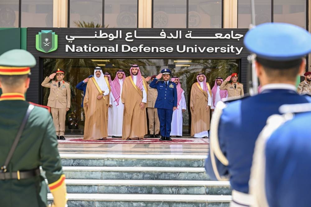 Upon his arrival at the university, he was received by the Deputy Minister of Defense Prince Abdulrahman bin Mohammed bin Ayaf, the Chief of General Staff, Lieutenant General Fayyad bin Hamid Al-Ruwaili, the Minister of Defense's Advisor for Intelligence Affairs Hisham bin Abdulaziz bin Saif, and the President of the National Defense University, Major General Mohammed bin Jadoa Al-Ruwaili.