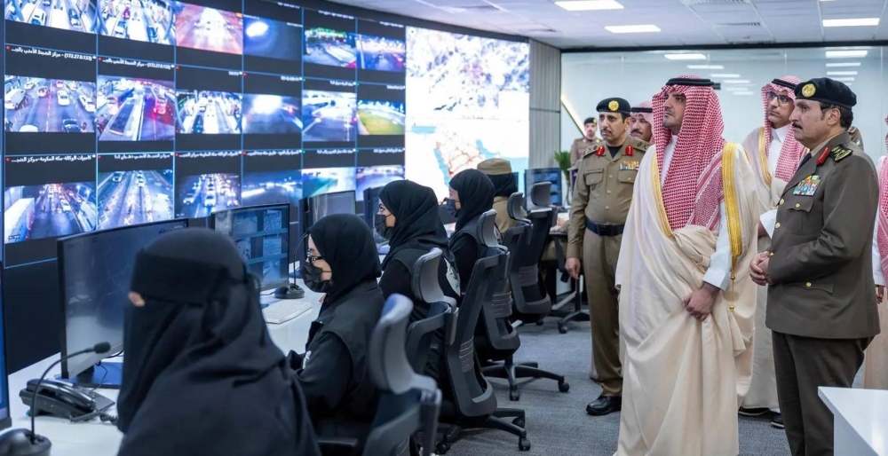 During the visit, Prince Abdulaziz bin Saud was briefed on a number of modern technologies at the field monitoring center that were employed for this year's Hajj, including the developed "Lucid" vehicle equipped with smart security systems and a range of modern technologies supporting monitoring and rapid response operations, along with the winged aircraft used for crowd monitoring and analyzing human densities in the air with high precision and speed.
