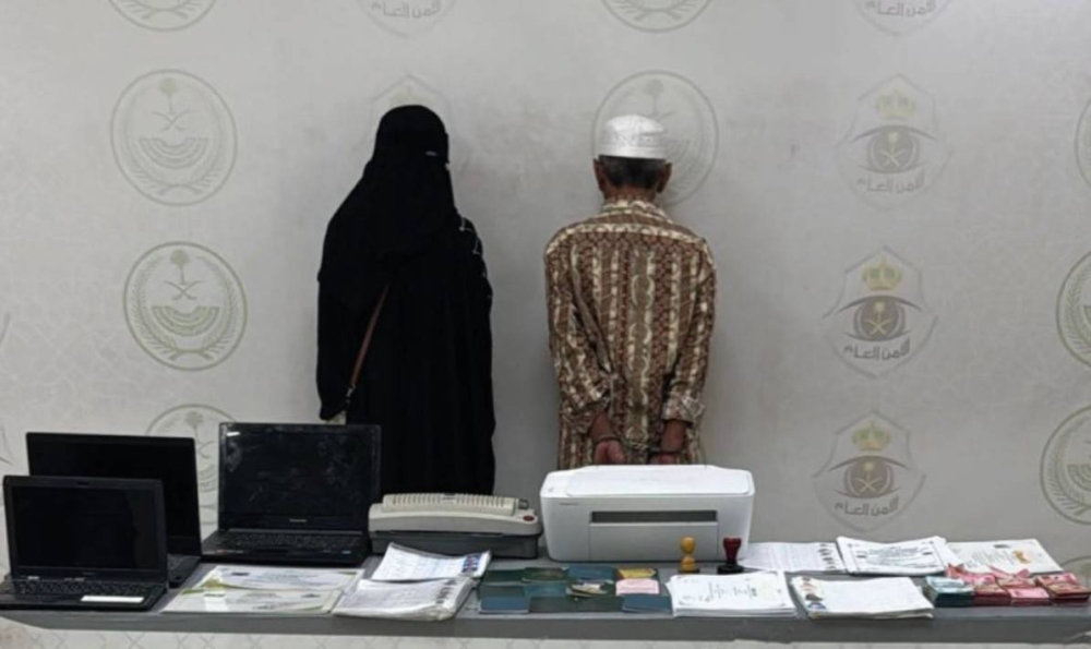 The security patrols in the holy capital arrested two Indonesian nationals for committing fraud by standing in front of a hotel and misleading their victims into believing they could perform Hajj on behalf of others for a fee, claiming to issue forged documents for this purpose, along with computers, mobile phones, and seals. They were detained, and legal procedures were taken against them, and they were referred to the public prosecution.