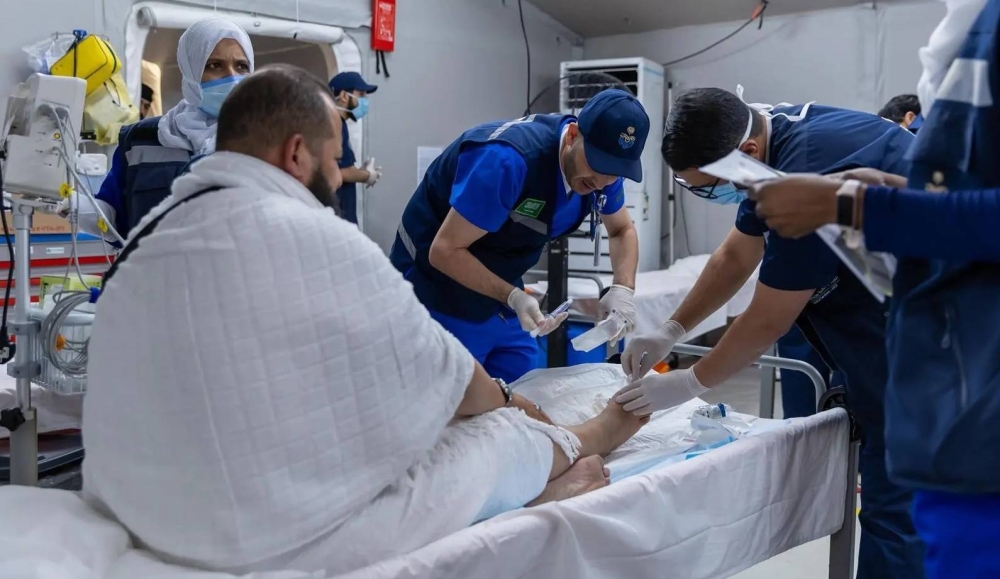 Continuing the efforts of the Ministry of Interior during this year's Hajj season 1446 AH to enhance the security and safety of the guests of الرحمن, the field hospital affiliated with the General Administration of Medical Services at the Ministry of Interior in the Arafat area provides advanced medical services to the pilgrims of the Sacred House of Allah, through a health system aimed at providing immediate care for emergency cases.