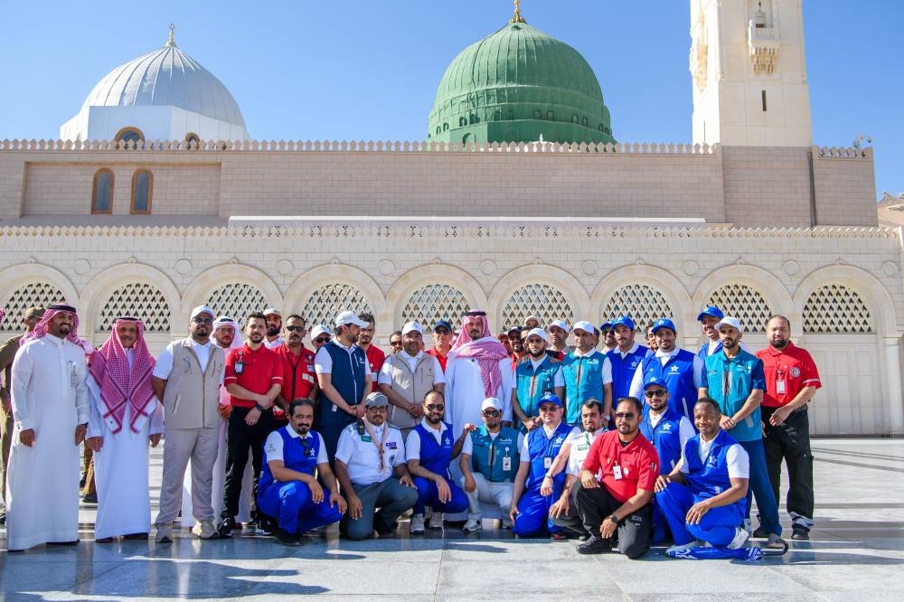 The Emir of the Medina region, Chairman of the Permanent Committee for Hajj and Umrah in the region, Prince Salman bin Sultan bin Abdulaziz, conveyed the greetings and pride of the Custodian of the Two Holy Mosques, King Salman bin Abdulaziz, and the Crown Prince, Prime Minister Prince Mohammed bin Salman bin Abdulaziz, to the security personnel and the entities participating in the Hajj missions; in appreciation of their sincere efforts in serving the guests of Allah, while being mindful of the great responsibility of maintaining the security of the Prophet's Mosque and preserving its tranquility for the comfort of its visitors.