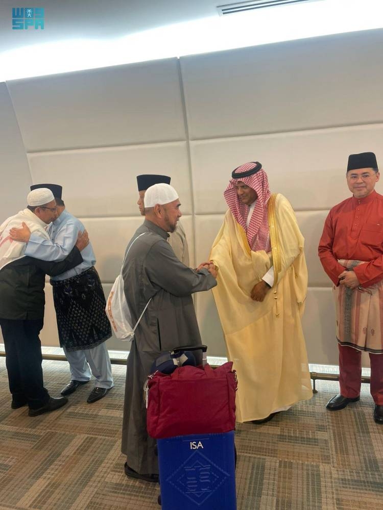 The Ambassador of the Custodian of the Two Holy Mosques in Brunei Darussalam, Mohammed Abdullah Al-Braithen, welcomed the Bruneian pilgrims arriving from the holy sites after performing the Hajj at Brunei International Airport in the capital, Bandar Seri Begawan, in the presence of several officials.