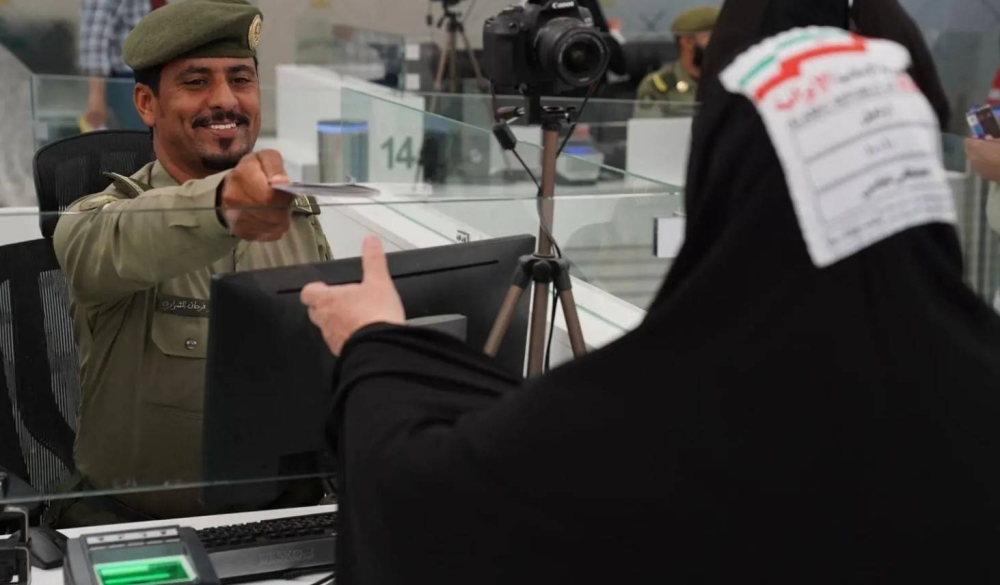 The General Directorate of Passports provides its human and technical capabilities to facilitate the departure procedures for the guests of Allah from Iran through the Al-Jadeedah Arar crossing in the Northern Borders region, amidst the current circumstances that the republic is experiencing, after Allah has blessed them with the opportunity to perform the Hajj this year, with ease and reassurance.