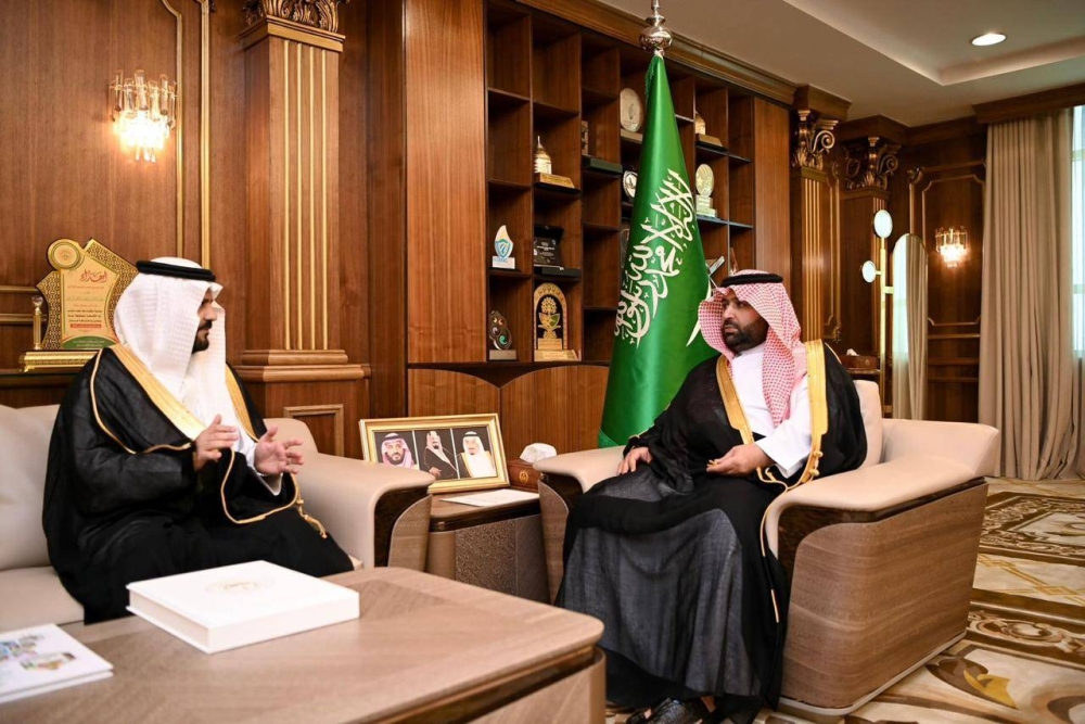 The Emir of Jazan Region, Prince Mohammed bin Abdulaziz bin Mohammed bin Abdulaziz, received the annual report for the year 2024 from the Vice Chairman of the Board of Directors of the Mountainous Areas Development and Reconstruction Authority during his meeting today with the Authority's CEO, Engineer Dhafir bin Aaidh Al-Fahad.