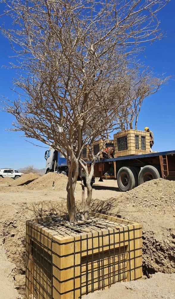 The process of transferring the ancient trees, which are classified within the "acacia" tree group with some being up to 100 years old, underwent precise procedures to maintain their safety and minimize damage during the transportation stages, which were carried out meticulously. This began with assessing the health of each tree and its ability to withstand the transportation process, providing the necessary equipment for excavation and transport, and preparing the new site to be suitable for the type of trees, including soil type compatibility, sunlight exposure levels, and addressing aspects related to irrigation sources and water drainage.