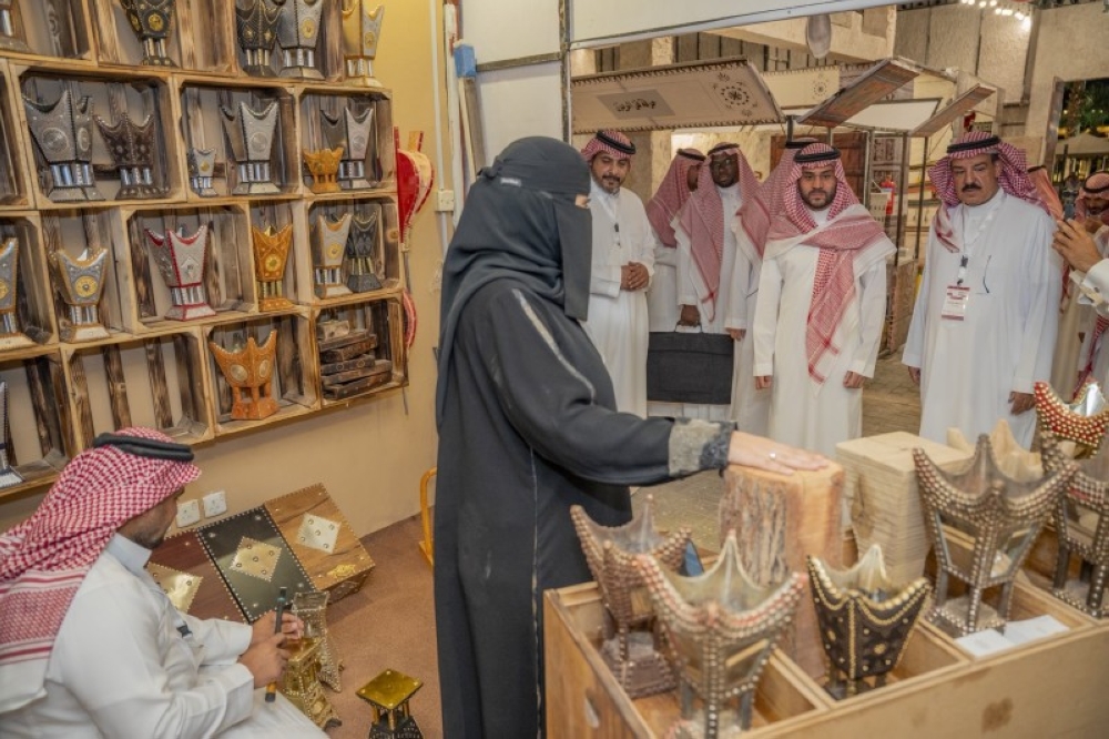 During his tour, the Deputy Emir of the Hail Region explored the sections of handicrafts and heritage products presented by more than 40 male and female participants, where the works varied between wooden crafts, hand weaving, artistic design, and the production of perfumes and incense, amidst a notable presence of visitors and those interested in local heritage.