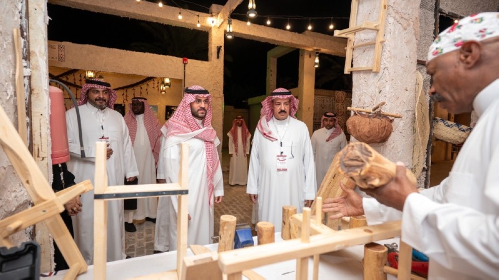 The visit included the pavilions of the honored guests from the Asir and Jazan regions, which showcased their rich heritage and folk arts, in a tangible embodiment of the cultural identity integration among different regions of the Kingdom.