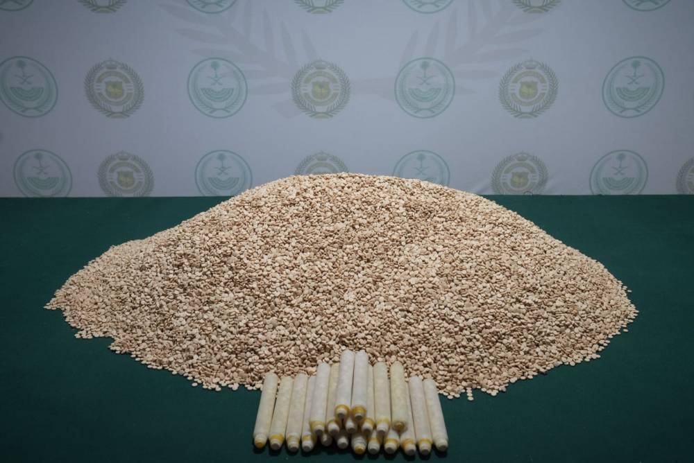 في إطار تنفيذ مهمات وزارة الداخلية في مكافحة المخدرات وجهودها في متابعة نشاطات تهريبها وترويجها، التي تستهدف أمن المملكة وشبابها، ضبطت الجهات الأمنية (411,546) قرصًا من مادة الإمفيتامين المخدر مخبأة داخل أنابيب بلاستيكية في أحشاء كائنات حية (أغنام) في محافظة حفر الباطن بالمنطقة الشرقية، وقبضت على مستقبليها، وهم وافد نازح ومواطنان.