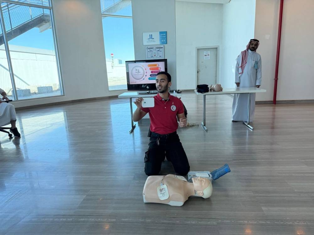 The Saudi Red Crescent Authority continued its expansion of the "Mu'adh" project in the Makkah region to include 52 facilities, training more than 1,200 male and female employees in first aid, supporting rapid response in emergency situations, and enhancing a safer environment in workplaces and public areas.