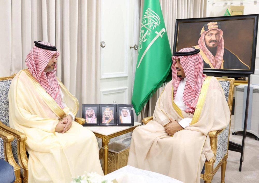 The Deputy Emir of Najran Region, Prince Turki bin Hadhluol bin Abdulaziz, met today in his office with the newly appointed Director General of the National Center for Vegetation Cover Development and Combating Desertification in the region, Muhannad bin Saleh Al-Yami.