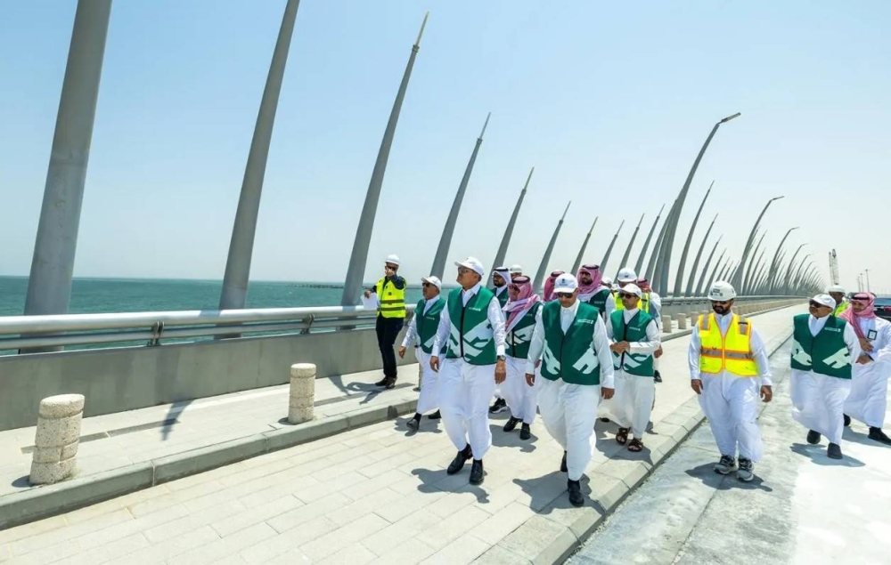 The project includes the construction of a marine bridge measuring 3.2 kilometers, which is the largest double marine bridge in the Kingdom, in addition to the construction of the Safwa roundabout, which is 300 meters long, and the completion of road works and the implementation of lighting. The project will contribute to reducing the distance between Dhahran, Jubail, and Ras Tanura, and supports the transport and logistics sector. The completion rate has reached 97.5%, with the concrete works for the bridge completed, lighting works implemented, and concrete barriers erected over a length of 1,786 meters.