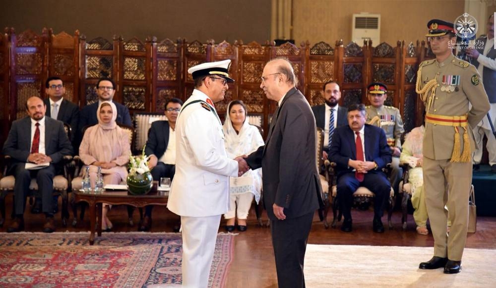 The Pakistani president conferred the medal upon the Chief of Naval Staff during his reception today at the presidential palace in the capital, Islamabad.