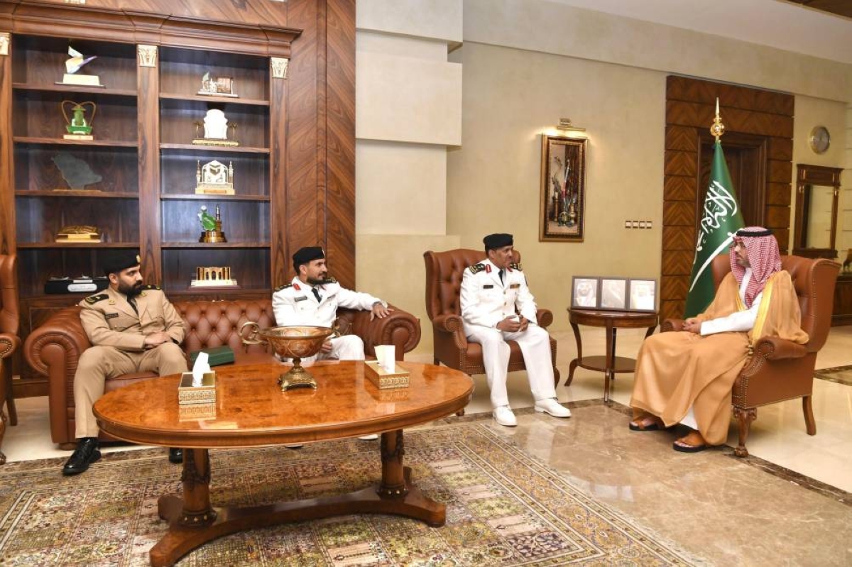 The Governor of Jeddah, Prince Saud bin Abdullah bin Jalawi, received today in his office the Commander of the Border Guard Sector in Jeddah, Rear Admiral Majid bin Salah Al-Mohamadi.