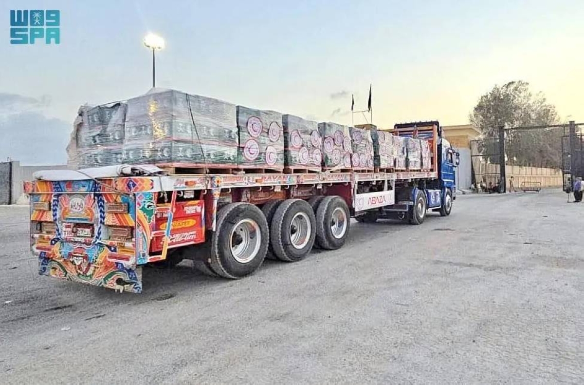 Today, 7 new Saudi relief trucks crossed the Rafah border crossing, carrying food aid provided by the King Salman Humanitarian Aid and Relief Center on their way to the Gaza Strip, as part of the Saudi popular campaign to assist the brotherly Palestinian people in the region.