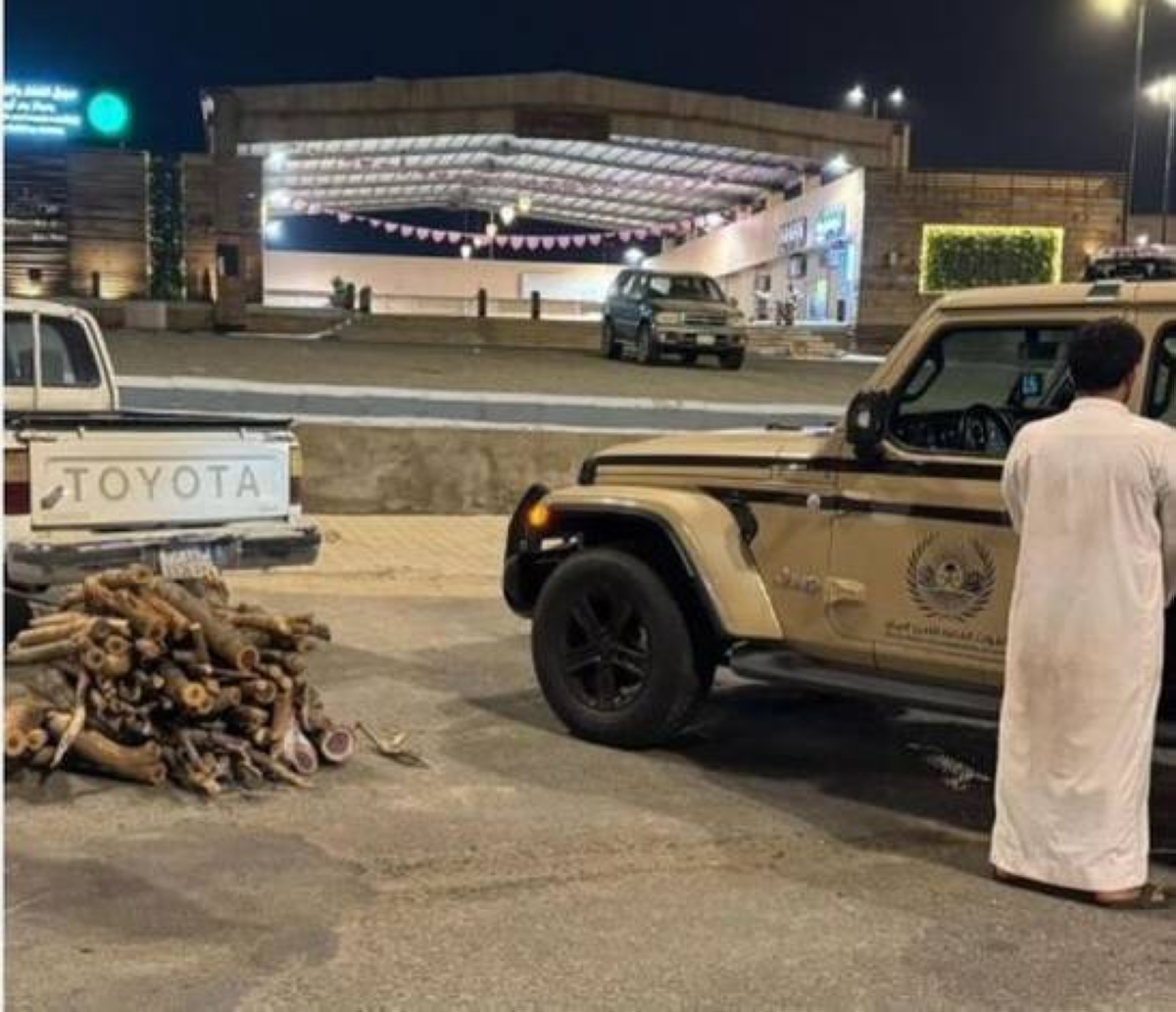 The special forces for environmental security apprehended a citizen violating environmental regulations, in possession of one cubic meter of local firewood used in commercial activities in the Asir region. Legal procedures were applied against him, and the seized quantities were handed over to the relevant authorities.