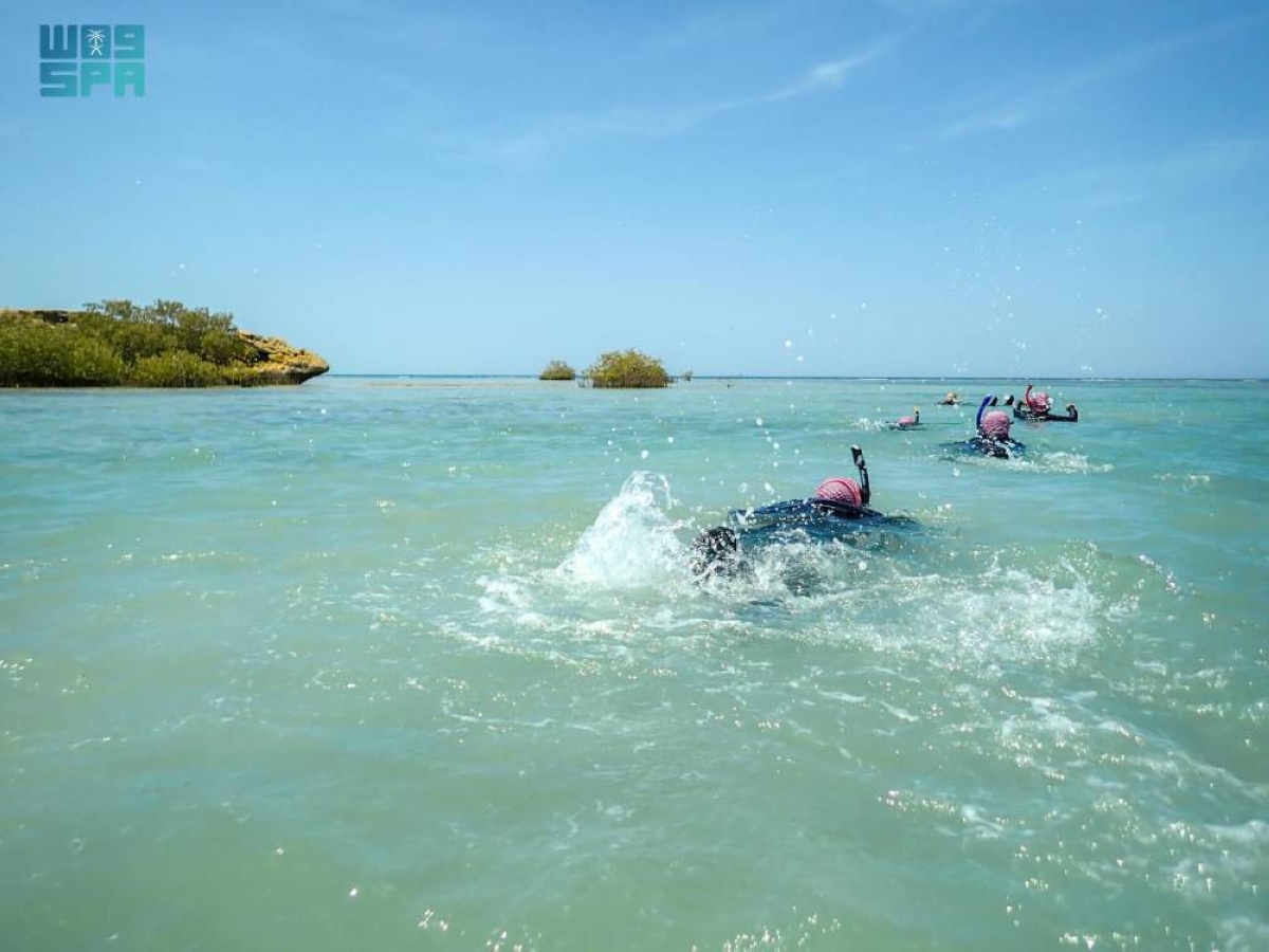 Ruqayyah Awad Al-Balawi, who has been working as an environmental inspector in the reserve for two years and was part of the first batch of environmental inspectors, said: "I discovered a new world beneath the water's surface, and I feel proud to be among the first group to learn swimming in the reserve after joining the training program where I learned many skills to preserve the natural resources that the reserve encompasses."