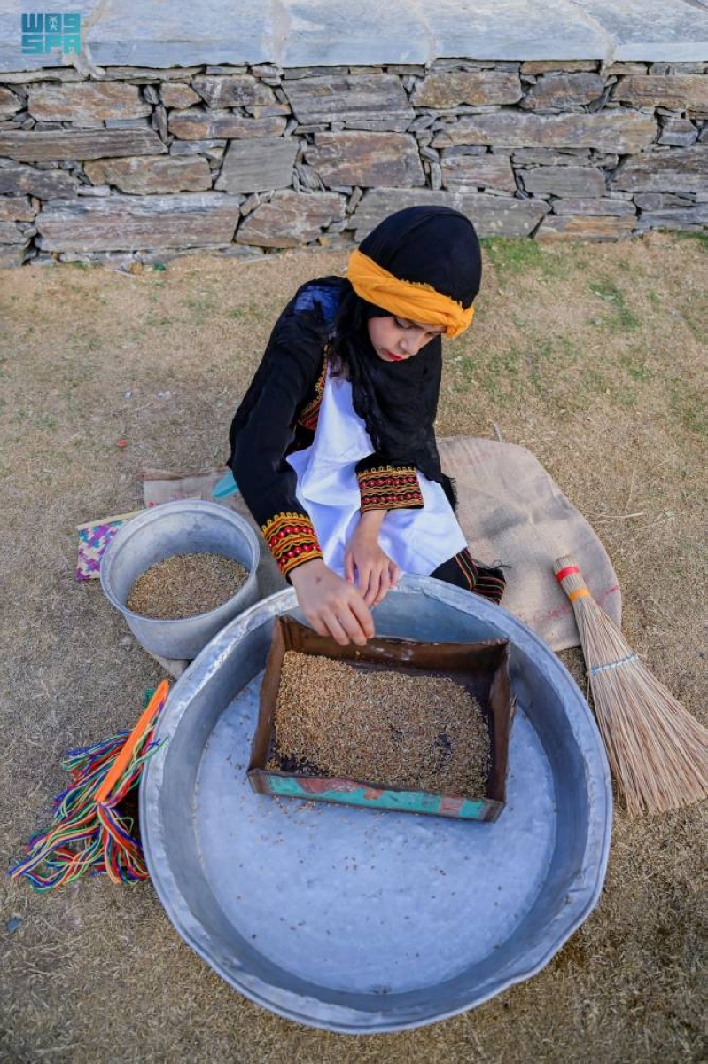 As if time had returned the seasoned visitors of the eighth Al-Atawlah Festival to half a century ago, they watched with their own eyes the (granddaughters) from the Al-Bahah region; preparing to take on the roles of mothers and grandmothers in their homes, fields, sheep pastures, firewood valleys, and traditional craft corners, reminding visitors of what the daily lives of a production community were like, where women contributed with creativity and partnership alongside their male companions tirelessly and without boredom. They reminisced with Farouk Goweda (as if something lived in my heart and two tears fell, for the scent is your scent and the place... is the place, but something has distanced us; you are not you... nor is time the time).